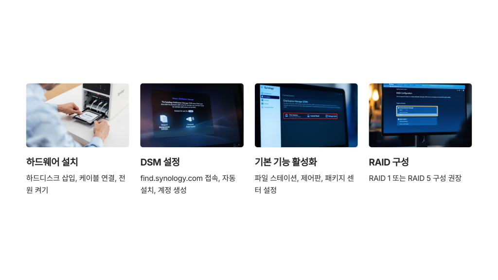 - 패키지 센터: 다양한 앱을 설치할 수 있는 곳. 미디어 서버, 백업 도구 등 필요한 앱을 골라 설치해보세요.